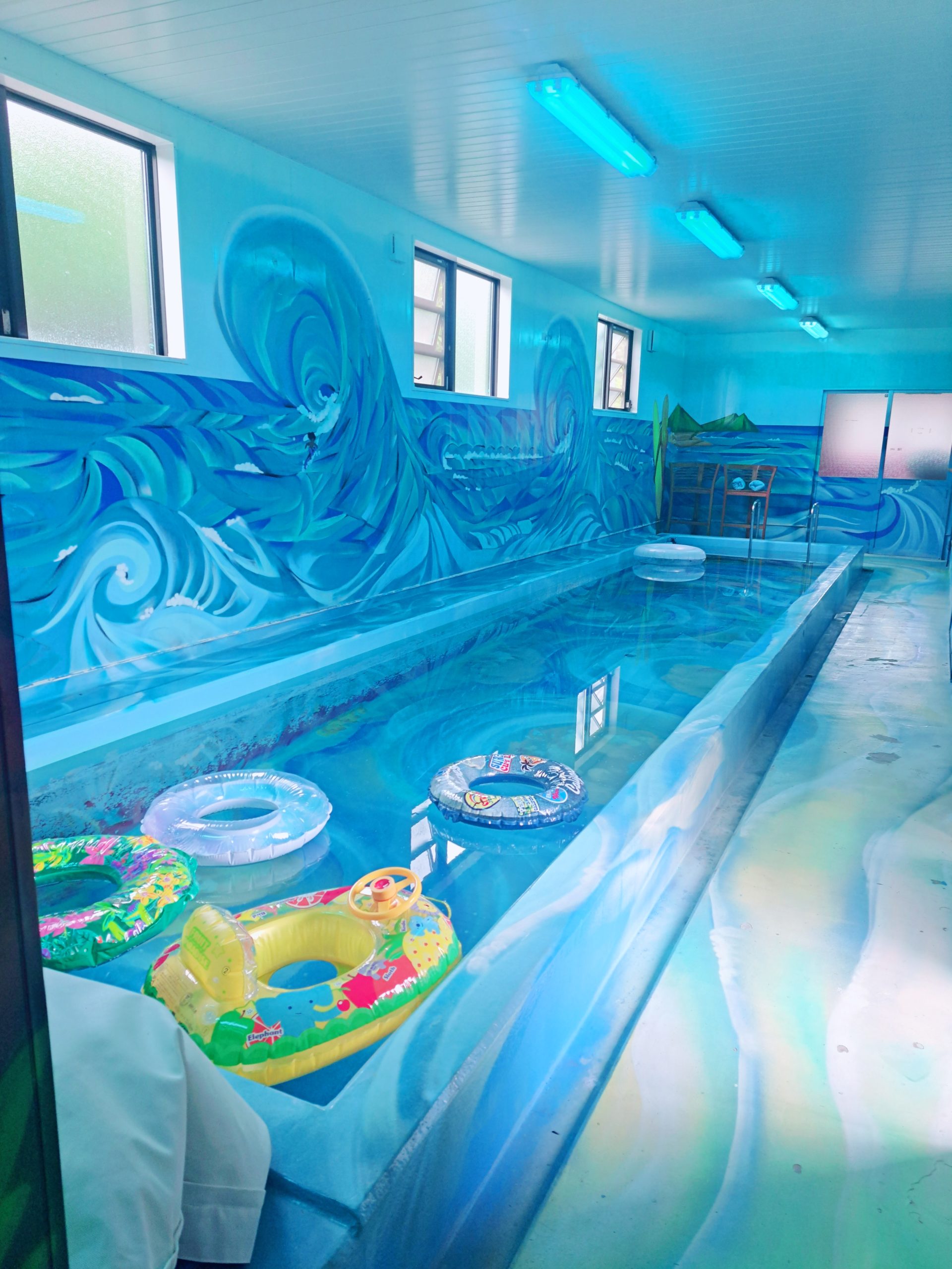 今日から、季楽のプールがスタートしました! 沢山の可愛い浮き具もプカプカ! もちろん、貸切で15メートル室内プールと、横には岩盤浴も! ジャグラー、シャワー、着替え場所も完備! 露天風呂や、サウナ、トランポリン、BBQと…